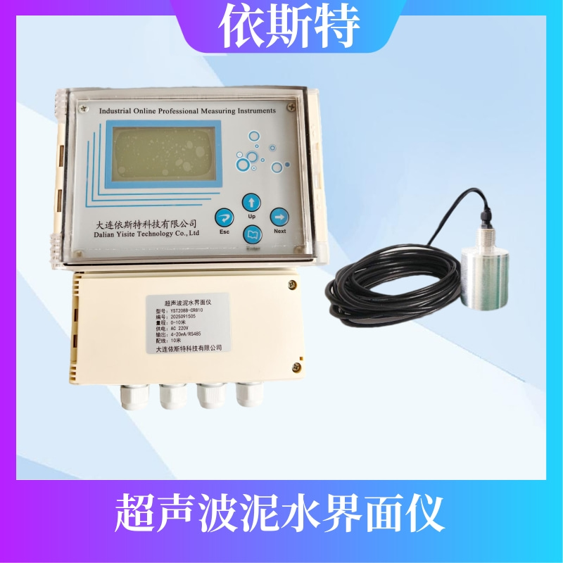 大连依斯特科技有限公司原厂直发,大连依斯特YST208B-CR810型超声波污泥界面仪,测量范围0-10米,220V供电,4-20mA输出,RS485通讯,铸铝壁挂式变送器,投入式传感器,配线10米。